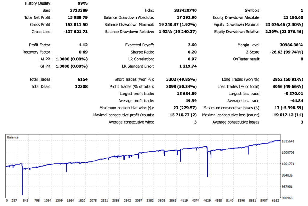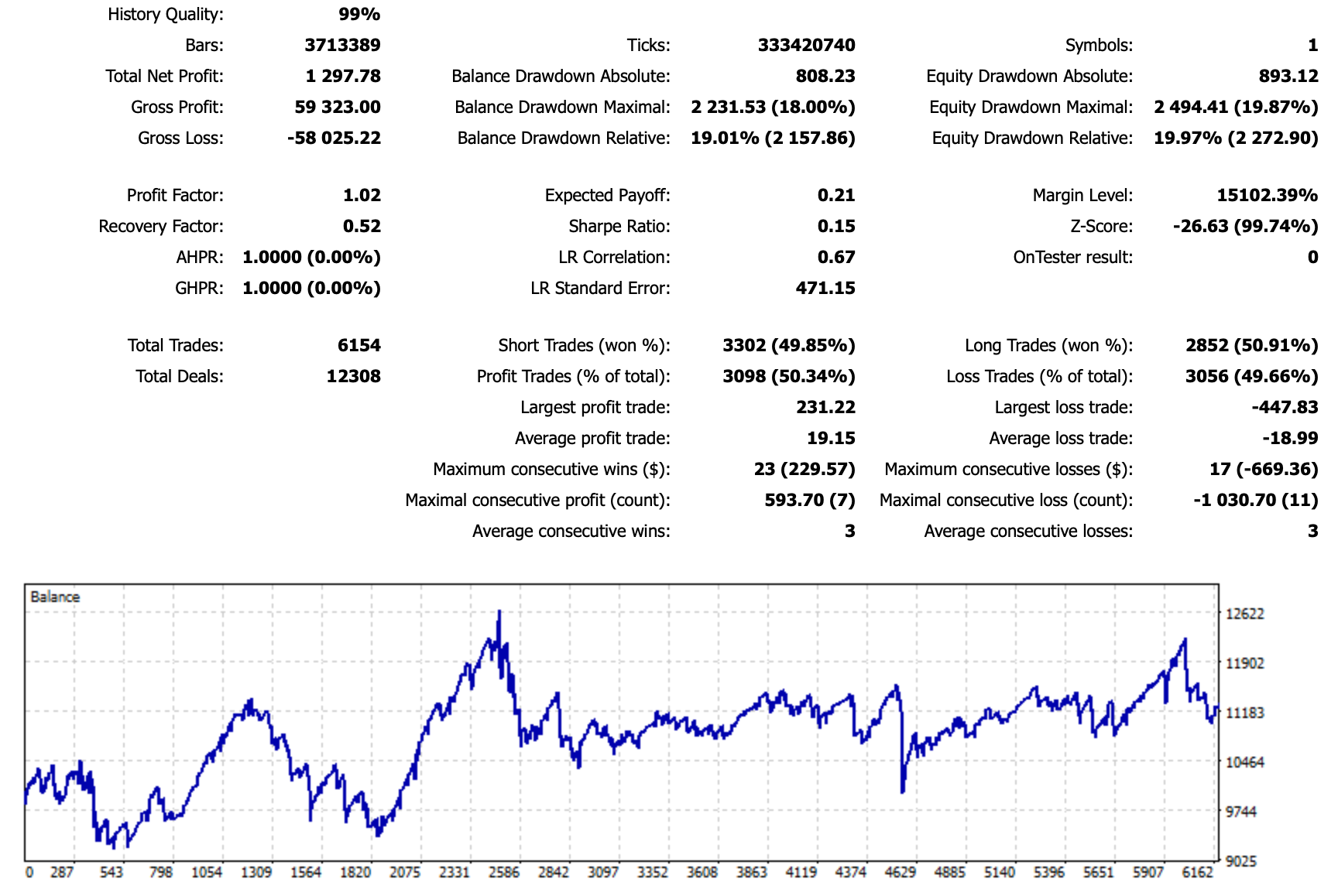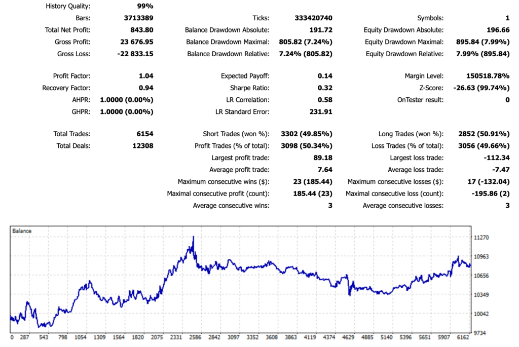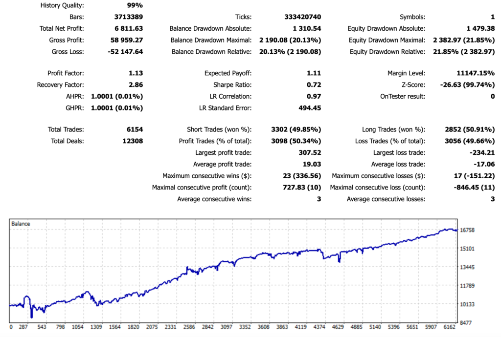 Over the course of 10 years, with a total of 6,154 trades, a profit factor of 1.14, and a recovery factor of 3.27, the backtest results of these EAs are not bad at all.